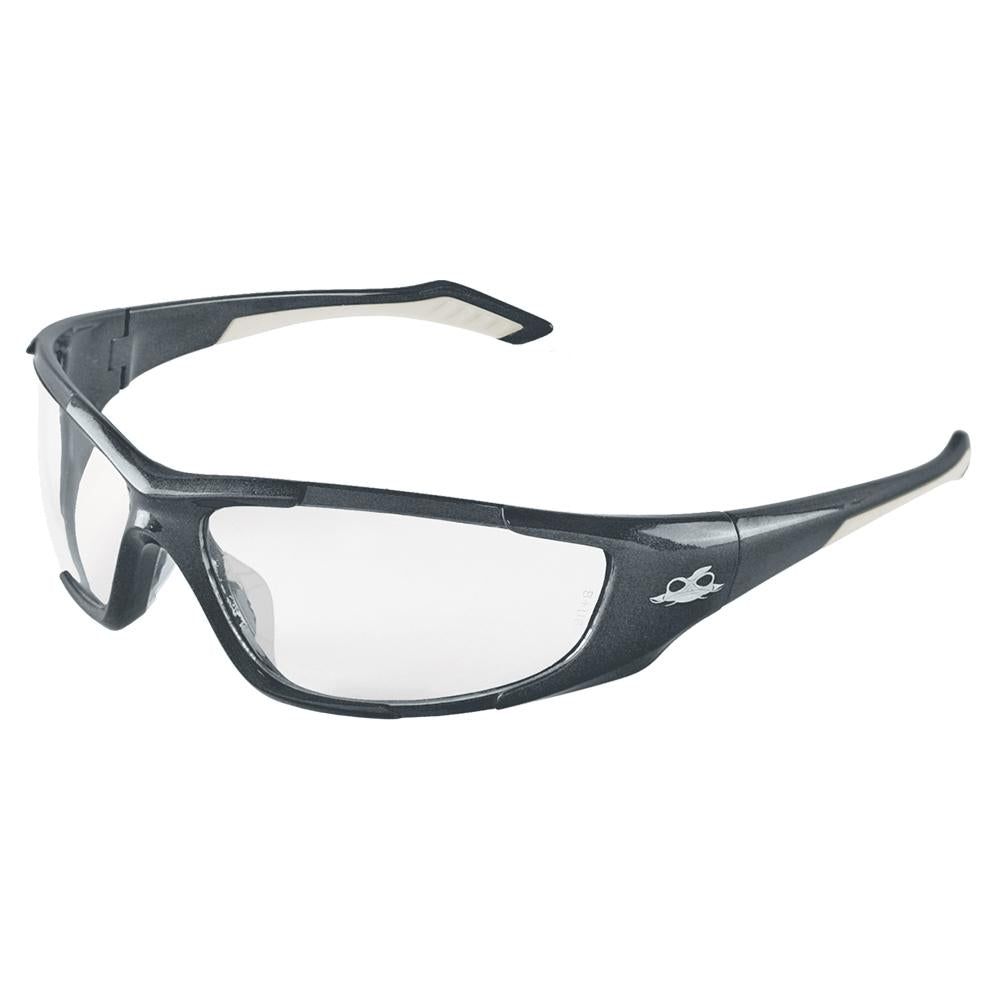 - Close fitting wrap frame with 8 base contoured dual lenses for superior side protection; TPR Temple ends and nose piece for maximum performance